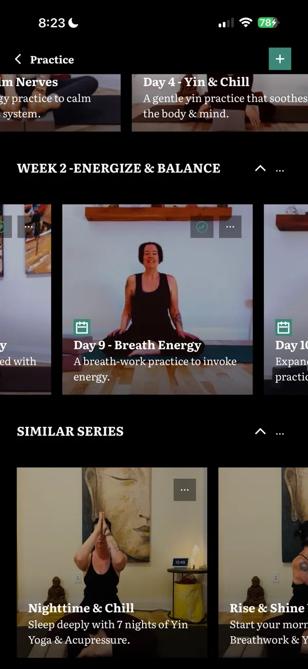 • In the web browser version of the SolefulYin Yoga App → You’ll see the course or eBook title with a short one-line description. Think of this as a sneak peek of how everything looks inside the app.
